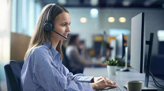 超軽量ボディに加え、柔らかなノイズダンピングイヤーパッドとパッド付きヘッドバンドを採用。長時間の装着でも疲れにくく、一日中集中して業務に取り組める快適なフィット感を実現します。